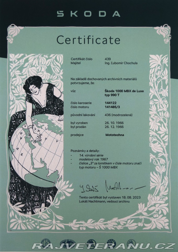 | Nadstandardní výbava: | Originál, žiadna skladačka, pôvodný technický preukaz, komplet história a Certifikát veterána od Škoda archív Mladá Boleslav. | |