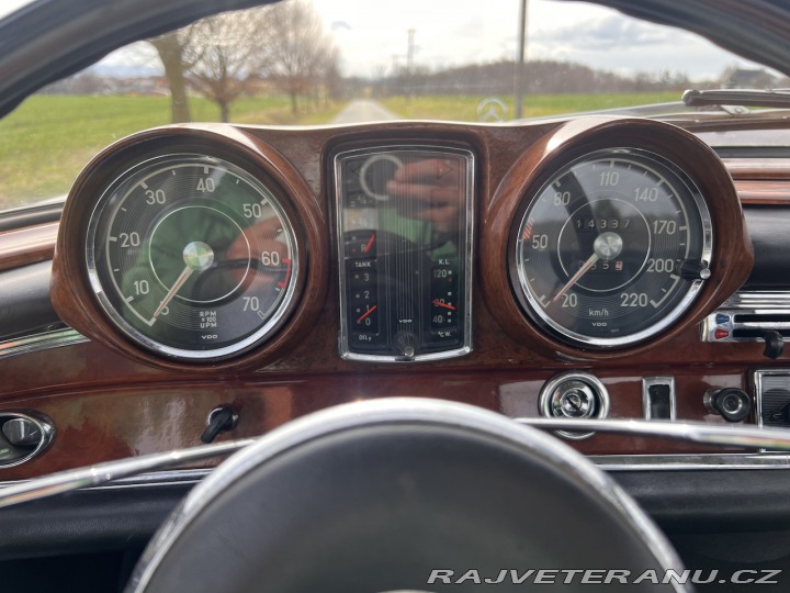 | Nadstandardní výbava: | Prodám Mercedes Benz W111 250 SE kupé (r.v. 1965), 2 majitel, na bílých číslech (technická do 11/24). Těchto kupé bylo vyrobeno pouze 6213 ks. Tachometr ukazuje 14000 km. Vozidlo je technicky ve výborném stavu, kompletní větší servisní dokumentace od cca roku 1970. Lak původní, ale moc pěkný. Minulou sezónu jsem s vozidlem najezdil cca 2 000 km. Po GO vstřikovače bosch, v minulé sezóně byla vyměněna AC pumpa, řemeny, kompletní servis, svíčky, nástřik spodku a zapalování nahrazeno elektrickým (to staré mám kdyžtak schované), seřízení ventilů. Auto obsahuje také původní opravárenskou sadu a také všechny originál věci (rádio, prostřední odkládací místo, klíče, rezervní kolo atd.), které se v té době dávaly do S klasse kupé. Cena 51000 euro /1266000 czk. | |