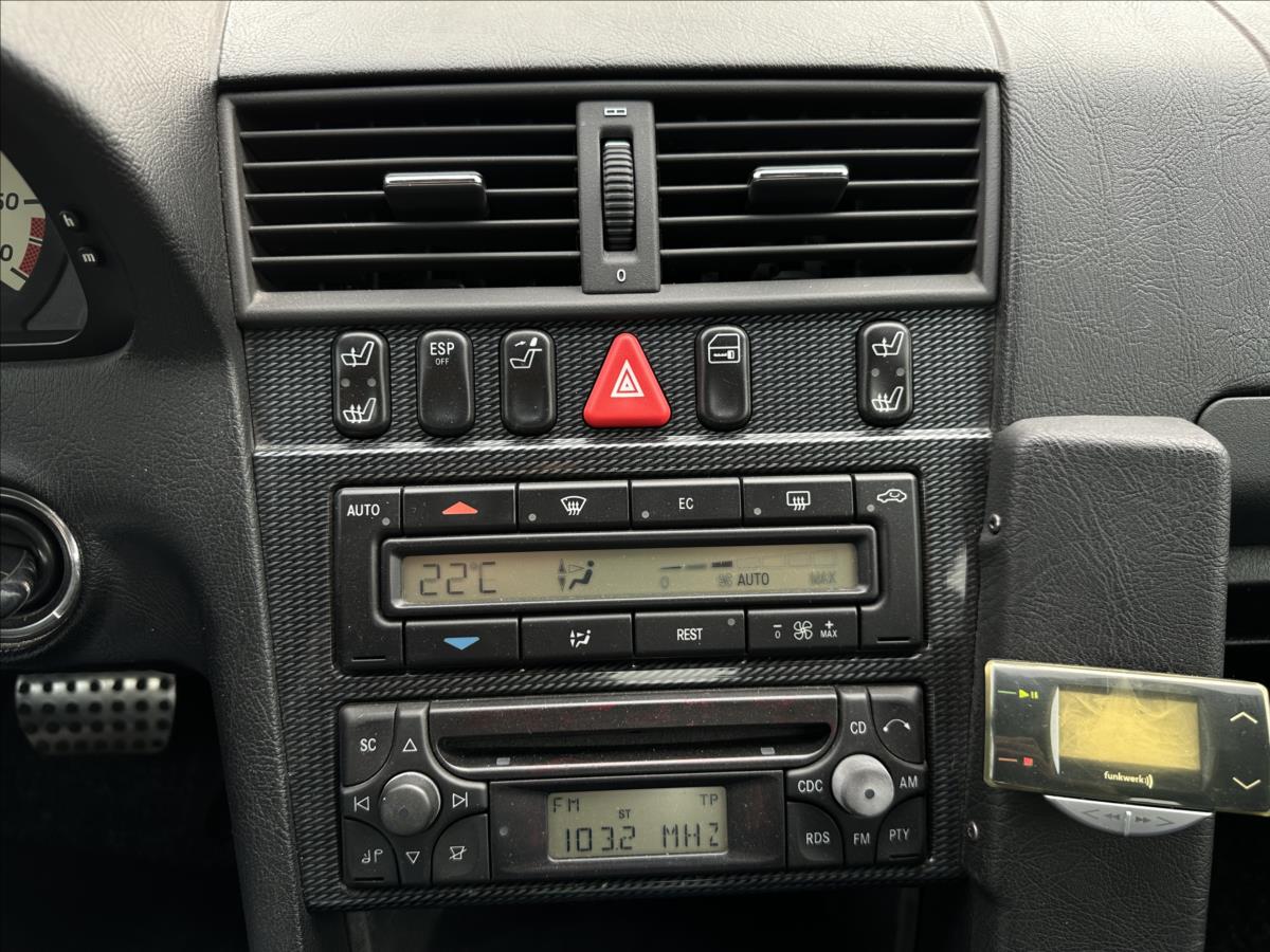 | Nadstandardní výbava: | 4x airbag, ABS, alarm, aut. klimatizace, aut. převodovka, autorádio, CD přehrávač, centrál dálkový, dvouzónová klimatizace, el. okna, el. seřiditelná sedadla, el. sklopná zrcátka, el. zrcátka, imobilizér, man. klimatizace, potahy kůže, kožené čalounění, alu kola, mlhovky, nastavitelný volant, palubní počítač, parkovací senzory zadní, posilovač řízení, protiprokluzový systém kol (ASR), senzor opotřebení brzdových destiček, sportovní podvozek, sportovní sedadla, tónovaná skla, venkovní teploměr, vyhřívaná sedadla, vyhřívaná zrcátka, výškově nastavitelná sedadla, | |