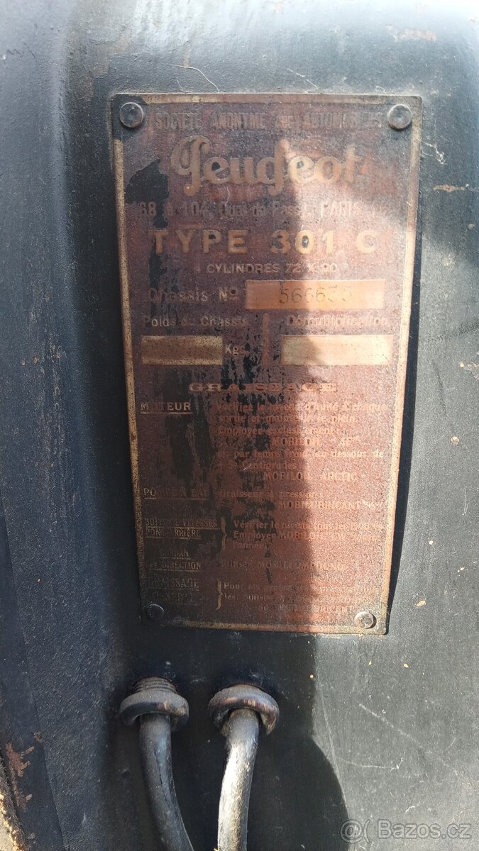 Doplňující popis: | Prodám Peugeot 301c,rok 1933,po starší částečné renovaci. Motor 1500cm SV běží pěkně. Výdřeva a plechy v pořádku není potřeba nic vyvařovat ani měnit výdřevu. Velmi zachovalé,lak nepůvodní starší ale zachovalý s patinou, čalounění pěkné. Možné nechat tak jak je. Pojízdný a funkční stav. Má výrobní štítek, štítek karoserie i plaketu prodejce. Doklady nemá,pouze ofocený odhlášený holandský TP,lze přihlásit na veteránské značky. Potřeba opravit starter(startuje dobře na kliku) a opravit dobíjení, jinak je plně funkční. K vozidlu mám obsáhlou servisní literaturu a stahovák nábojů kol. Více info rád sdělím na zavolání vážnému zájemci. | |