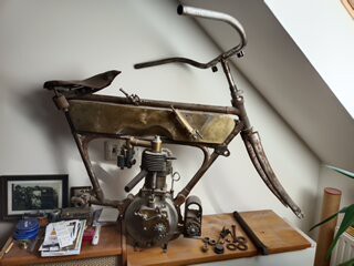 Doplňující popis: | Motocykl torpédo se sajdkárou. Rok výroby kolem roku 1912 obsah 636 cm3. K motocyklu je ještě pár věcí které nejsou na fotce, ráfky,pneu, originální štítek, atd. Zadní část rámu chybí. Postranní vozík je vyroben firmou torpedo. Je značen na centrální matici kola. tel.728981750 | |