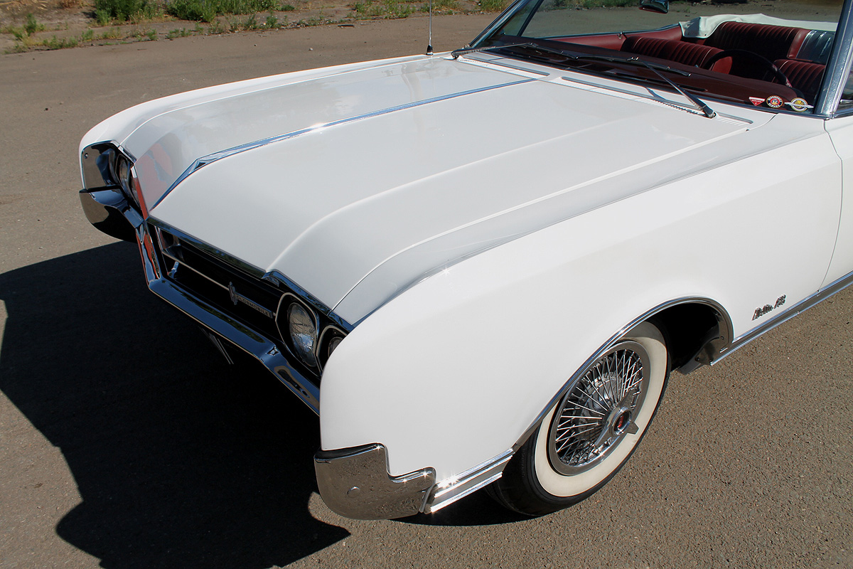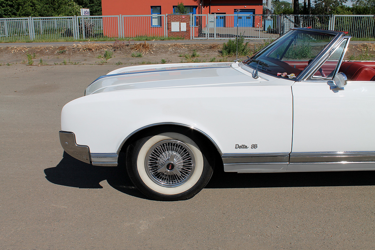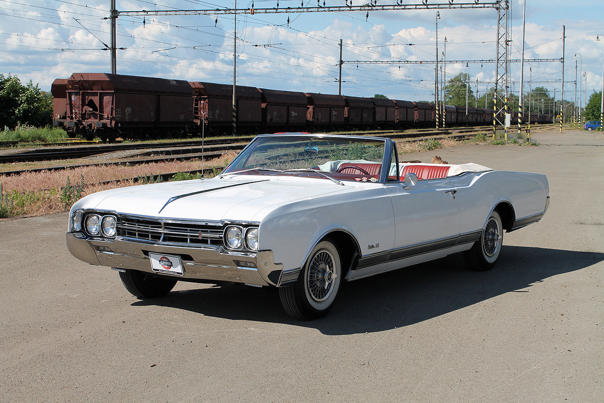 Nadstandardní výbava: | V roce 1965 představil Oldsmobile novou generaci svých fullsize modelů. Model Delta 88 byl v hierarchii těsně pod nejdražším modelem 98. V karosářské verzi kabriolet se v roce 1966 vyrobilo pouze 4303 kusů a odhaduje se, že by mohlo být dochováno zhruba 5 procent produkce. Jedná se tedy o poměrně raritní model, navíc s téměř kompletní příplatkovou výbavou. Nabízený Olds prošel před cca 10 lety v ČR kompletní renovací a je ve vynikajícím stavu bez investic. Karoserie byla odstrojena a obroušena na holý plech, žádné vyvařování nebylo potřeba, auto bylo zdravé bez koroze. Nový lak je ve velmi dobré kvalitě. Chromy jsou perfektní, jako nové, bylo použito mnoho nových NOS dílů. Stahovací střecha byla během renovace instalována nová. Mechanismus je bezchybný. Okna jsou tónovaná a bez vad. Zavazadlový prostor je nově čalouněný, motorový prostor byl také renovován. Interiér je kompletně nový. Sedačky jsou čalouněné červenou kůží se vzorem přesně podle originálu. Všechny plechové díly interiéru byly lakovány, koberec je nový. Vše je v elektrice - okna, střecha, seřiditelná sedačka posuvná v 6 směrech. Do originálního rádia bylo doplněn modul na přehrávaní MP3. Z mechaniky bylo vše překontrolováno, co bylo potřeba vyměnit , bylo vyměněno. Motor je původní a běží velice dobře. Auto jezdí perfektně, nikde nic nekape, vše je plně funkční. Nádherný a vzácný vůz v jedné z nejlepších barevných kombinací. Velmi kvalitní sběratelský kousek, do kterého bylo investováno mnoho času i financí. Platná převoditelná testace. Skladem v Hradci Králové. | |