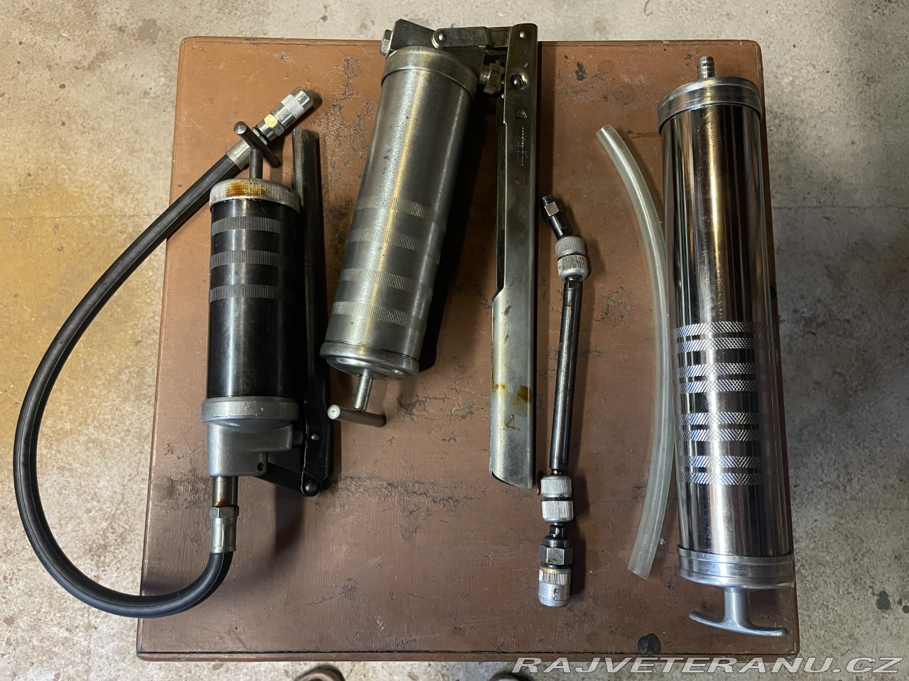 | Doplňující popis: | Vážení, prodal jsem Jeep CJ-3B a zbylo mi trochu nářadí nářadí - klíče očkoploché palcové TONA 1/4", 3/8", 7/16", 1/2", 9/16", 5/8", 11/16", 3/4", klíč 28mm vpravo je pro otevření nádržky brzdové kapaliny otvorem v podlaze kabiny - mazací lis pákový s hadicí - mazací lis pákový kloubový - odsávačka oleje 1000m nechám levně. | |