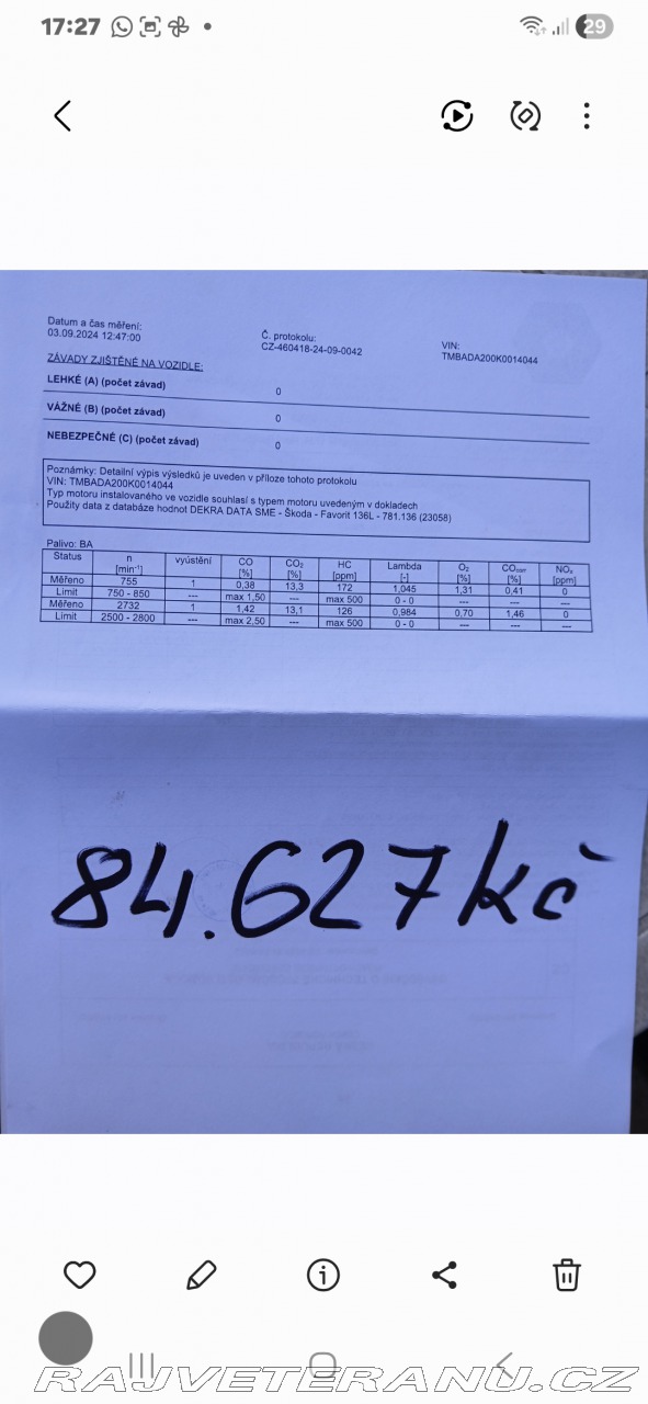 | Nadstandardní výbava: | Střešní okno, autorádio skoda, tažné zařízení využívané spradicky | |