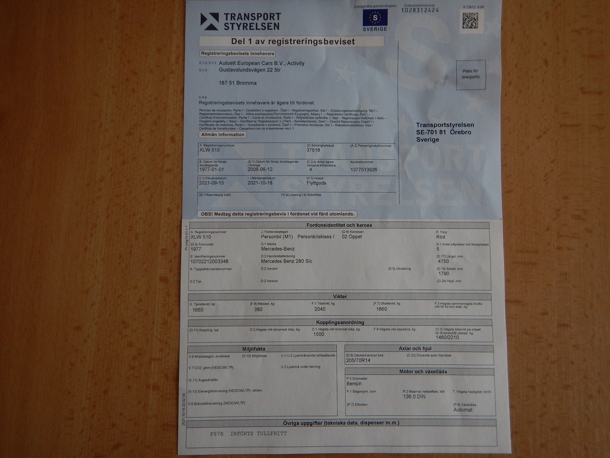 | Doplňující popis: | Vůz není přihlášen na českých dokladech. Dovozovou STK můžeme po dohodě zařídit. Vůz jde přihlásit na bílé SPZ!!! VIN: WDB10702212003348 | |