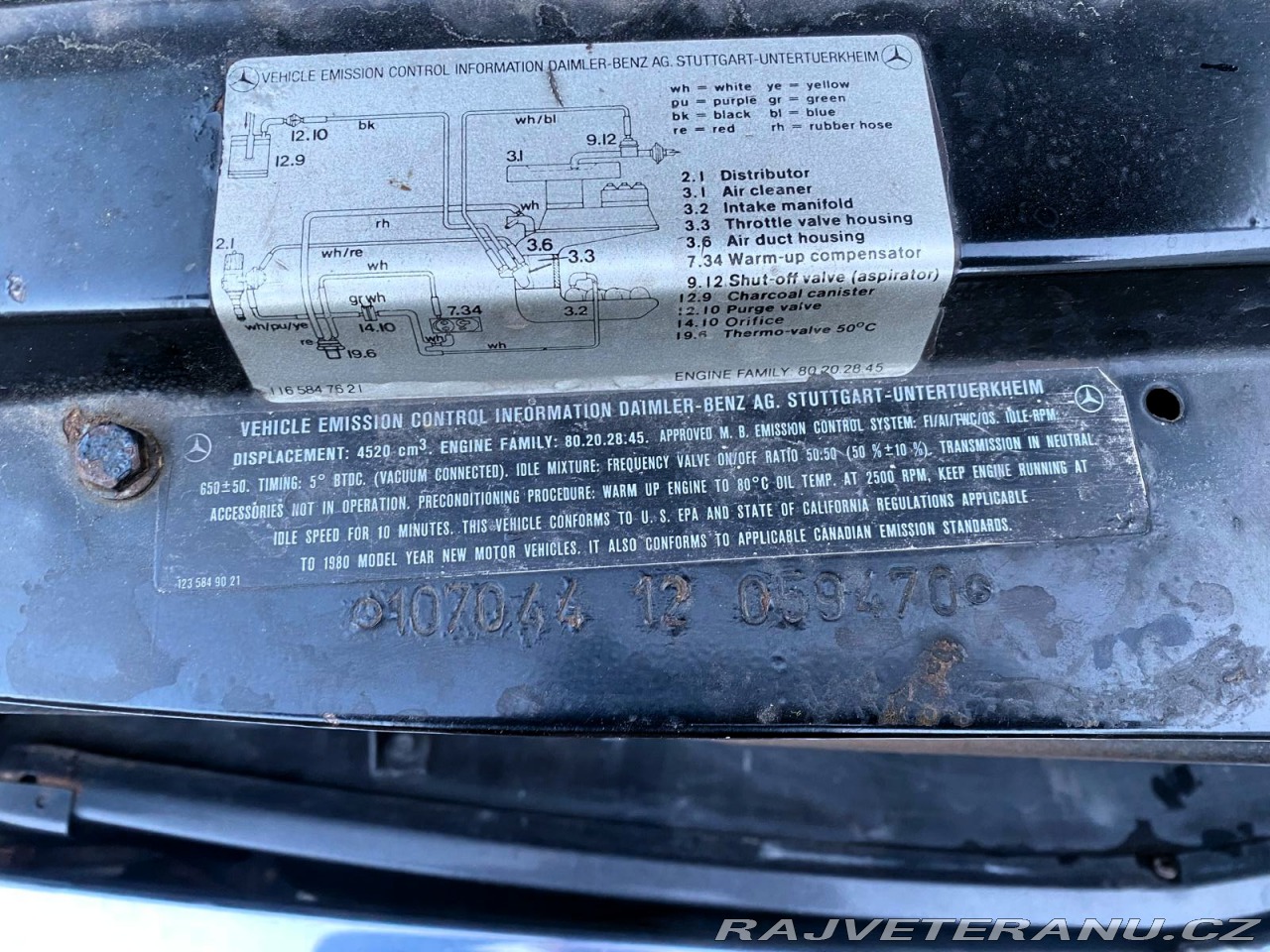 | Doplňující popis: | Nabízím Mercedes-Benz 450 SL, typ R107, V8, 165 kW, automat, černá metalíza (antracit), r.v.1979, do provozu 1980, VIN: WDB10704412059470 , původní stav, nerenovováno, motor běží, převodovka řadí, interiér je původní, roadster + hardtop, evropské nárazníky, mlhovky, k vozu přidám i nějaký zakoupený materiál jako komplet pryžová těsnění, vůz má veteránské SPZ, průkaz historického vozidla, poslední testace 2020, najeto 138.000 km, původem dovoz z Californie (dva majitelé), prohlídka možná ve Zlíně po předchozí domluvě. | |