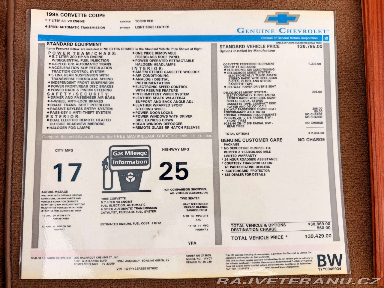 | Doplňující popis: | Rok výroby: 1995 Tachometr: 77 588 mil Palivo: benzín Objem: 5 735 ccm Převodovka: automatic Pohon: zadní Výkon: 224 kW (300 koní) Země původu: USA Karoserie: coupe Barva: červená Corvette je na našem skladu na Floridě připravena ihned k zaslání do ČR, v hezkém stavu s kompletní dokumentací včetně Window Sticker a Build Sheet. Cena je kompletní a finální s dopravou až do ČR včetně všech importních poplatků. Detailnější informace o historii a celkovém stavu Vám rádi zodpovíme telefonicky nebo na video obhlídce kde Vám detailně celé vozidlo ukážeme. STAV KILOMETRŮ A PŮVOD AUTA: K vozu je original Florida title a dokumentace. NÁKUP: Corvette je na našem skladu na Floridě připraven ihned k zasláni do ČR. Dodáni cca 5-6 týdnu. Cena je komplet včetně přepravy na náš sklad v Praze. Ford si můžete jednoduše zakoupit na naších stránkach s možností osobního převzetí u nás na skladu v Praze za cca 5-6 týdnu nebo Vám ho doručíme na Vaši adresu. | |