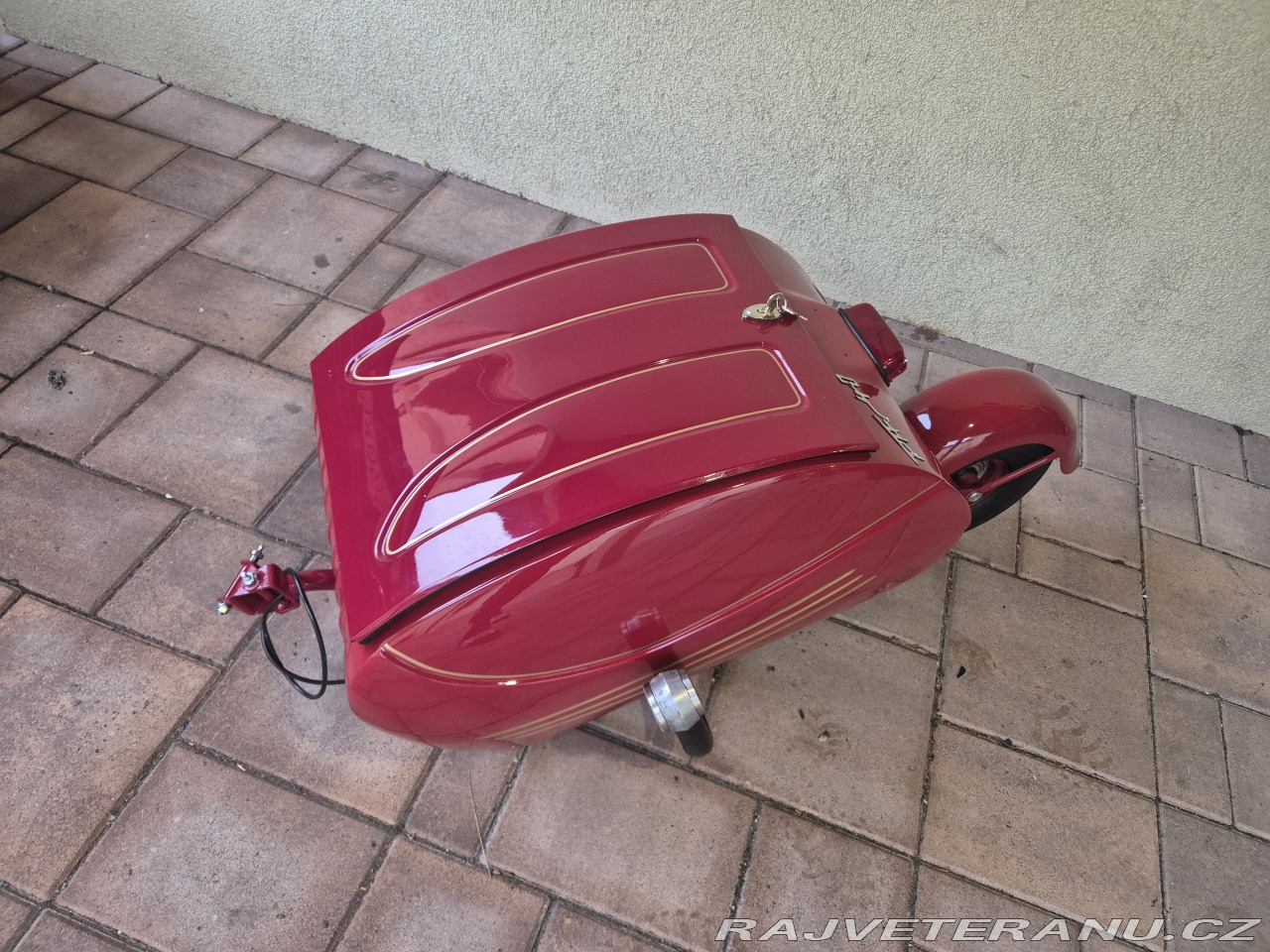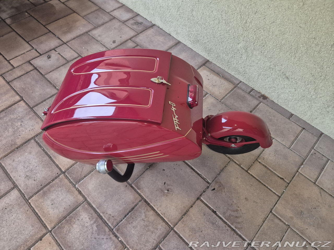 | Nadstandardní výbava: | Prodam navesny (privesny) vozik za veteran jawa cz PAV 40. Po kompletnej renovácii, rucne malovane zlate linky, vacsina dielov nova vratane pneu. Jedna sa o prvy typ s odpruzenim pruzinami, neskor pav 41 mal gumene silenbloky. Vozik ma jeste zasouvaci viko. K voziku je povodny stitek + novy cisty stitek. Vhodne na jawu 250 350 perak cz 125 175. Cena 45 000,-czk Lokalita Bratislava po dohode moznost dovozu Breclav Brno Praha Kontakt na +421 914700229 / mayko.alojz@gmail.com Pav40 pav40/B pav41 | |
