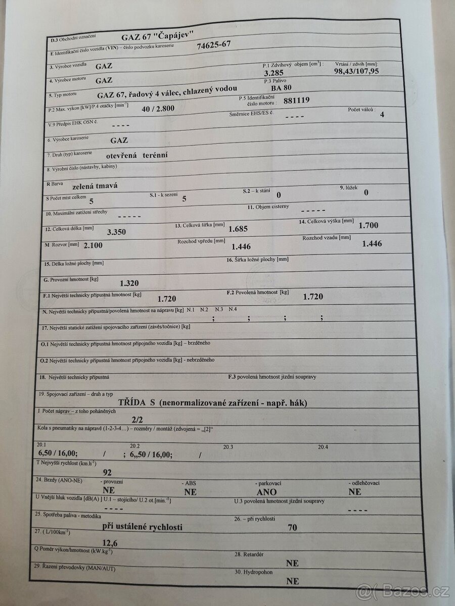 | Doplňující popis: | TEL: 777883490 OKR: ČESKÉ BUDĚJOVICE Prodám unikátní kousek z depozitáře. Nikdy nejetý Gaz 67 Čapájev. Veteránská testace žádná koroze garážované. Cena k jednání, | |