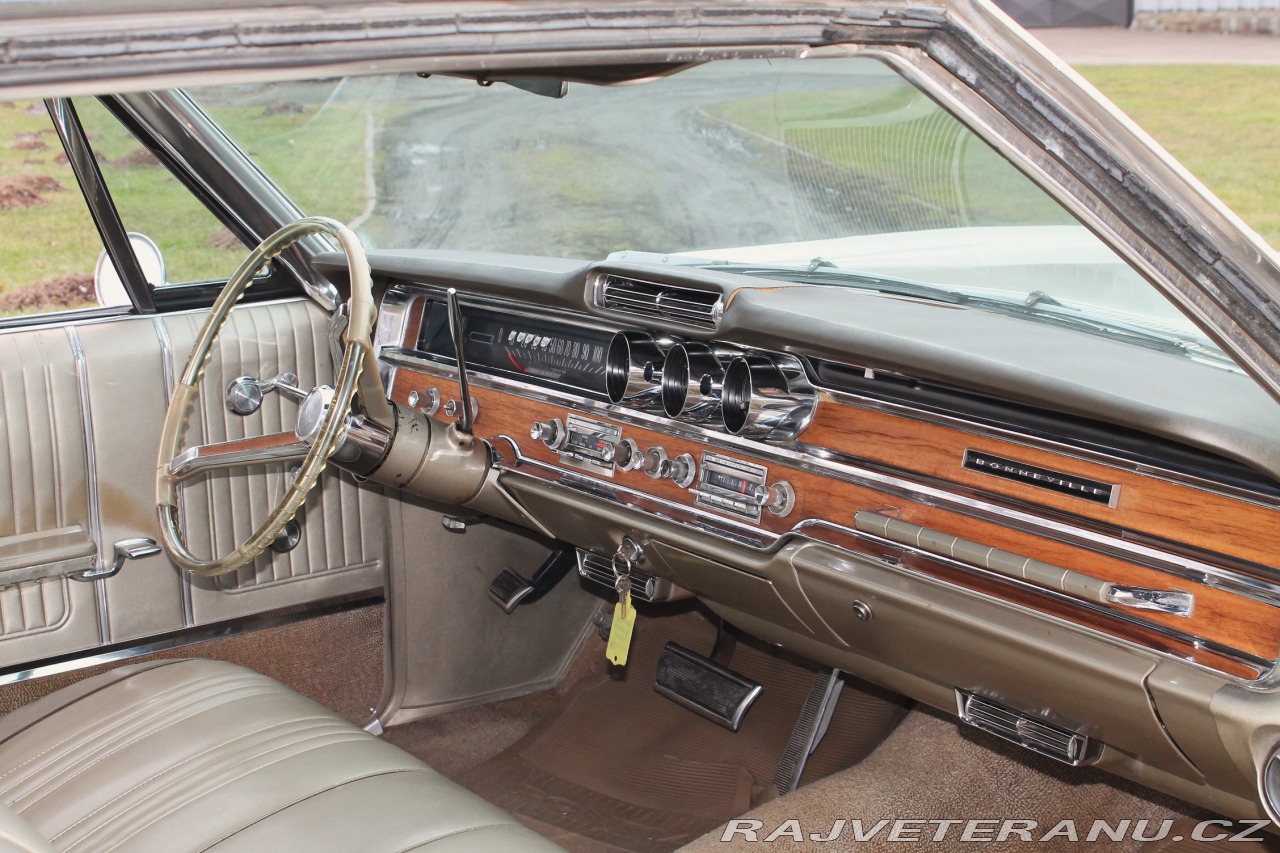 | Nadstandardní výbava: | rodám 1965 Pontiac Bonneville 2dr Coupé s motorem 389 V8 (6.5L) a automatem. Typický survivor. Původní velmi pěkné a nerenovované auto. Karoserie je v dobrém původním nerenovovaném stavu s většinou originálního továrního laku. Vzhledem k věku má samozřejmě různé malé optické vady (prošopaný lak v hrankách, mírné odřenicky atd..). Minimální koroze (vesměs pouze povrchová). Kompletní, všechny lišty i chromy zachovalé. Velmi pěkný původní interiér. Mechanicky je vše v pořádku, startuje na otočení, vrčí pěkně. Papíry EU, veteránské doklady mohu zajistit. Jedno z nejkrásnějších fullsize kupé 60. let. Skladem v Hradci Králové. Možná výměna za jiného veterána. | |