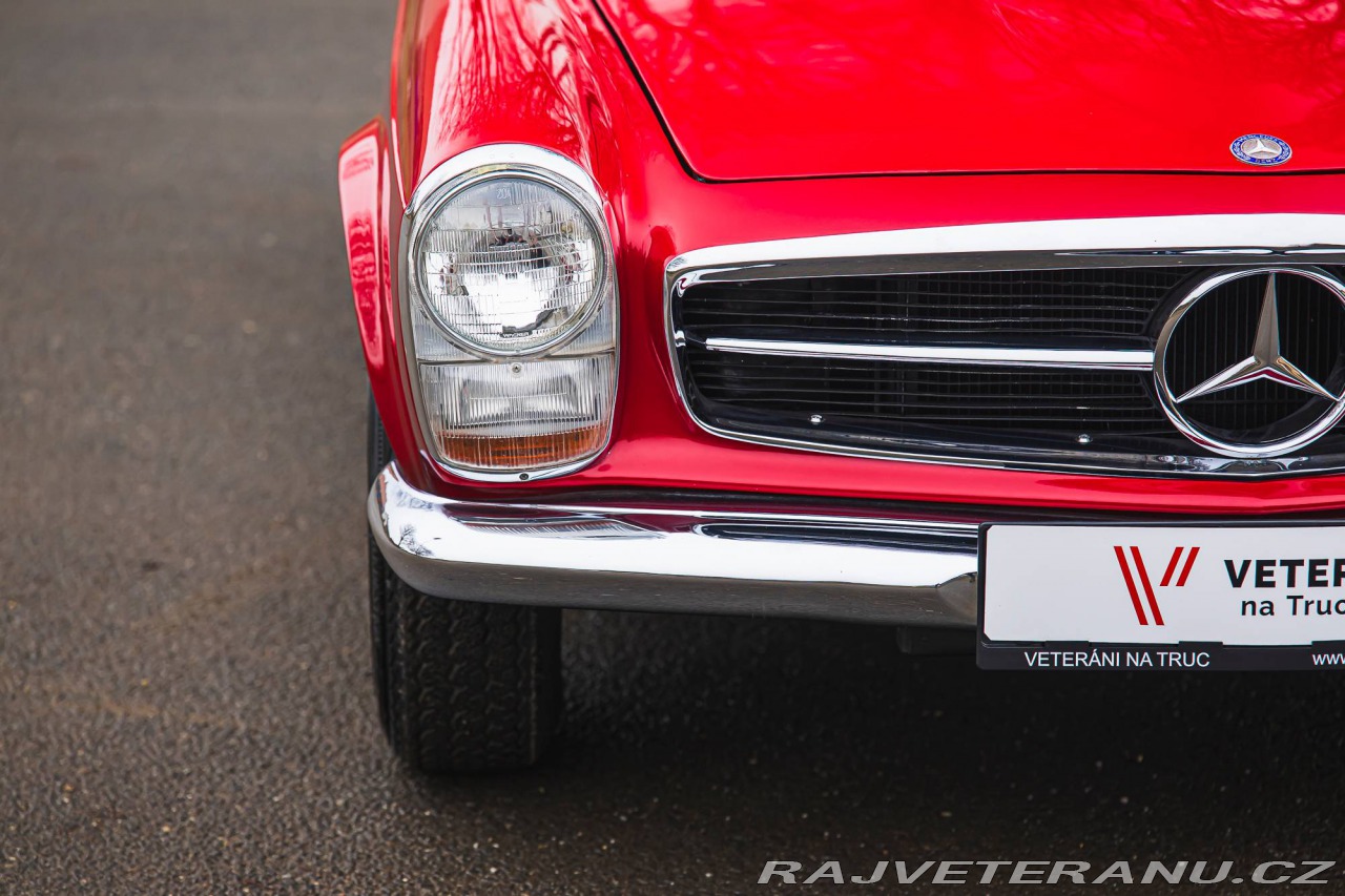 | Doplňující popis: | Mercedes-Benz 230 SL (W113) představuje elegantní roadster šedesátých let, který spojoval sportovní charakter s každodenní použitelností a na svou dobu neobvykle vysokou mírou bezpečnosti. Typická mírně prohnutá střecha přezdívaná „Pagoda“ nebyla jen designovým prvkem, ale také konstrukčním řešením zvyšujícím pevnost karoserie. Řadový šestiválec s mechanickým vstřikováním Bosch dodává vozu kultivovaný, plynulý projev a dělá z něj spíše rychlé cestovní GT než čistě ostrý sportovní vůz, což je dodnes jedním z jeho největších kouzel. Vůz z roku 1966 je osazen motorem o objemu 2,3 l spojeným s automatickou převodovkou. Lak v červeném odstínu je kombinován s hnědým interiérem, což podtrhuje dobový charakter modelu. Automobil je registrován v České republice na historických registračních značkách a nachází se v dobrém vizuálním i technickém stavu. Celek působí uceleně a odpovídá specifikaci modelu 230 SL druhé poloviny šedesátých let. Veteráni na Truc: parta normálních lidí, kteří milují auta. Desítky aut máme skladem v naší péči a další připravené k dovozu. Rozumíme vašim potřebám, jsme k dispozici pro vaší plnou spokojenost, protože ta je naším cílem. Umíme toho víc – například veškeré dokumenty nutné pro přihlášení vyřídíme rychle a efektivně. Více informací ochotně poskytneme na telefonním čísle +420725474564 (i Whatsapp). Umíme vyřešit dovoz vašeho vysněného auta odkudkoliv (ať už klasického nebo nového) včetně registrace, pojištění a dalších souvisejících služeb. | |