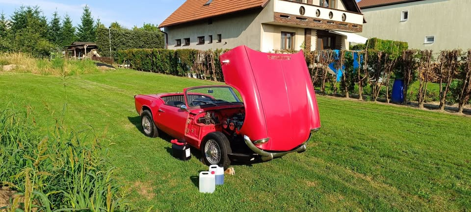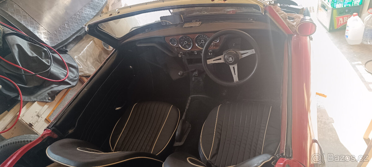 | Doplňující popis: | Prodám Triumph Spitfire Mk.3, rv. 1968, Auto je privezeno z anglie, zachovalá stahovací střecha, hardtop a karoserie chce opravy. Motor OK, vyměnena AC pumpa a mrazovky, Rám a listové pružiny po kompletní renovaci. 5x drátový disk, klíč na kola s centrální maticí, Originální tištěná příručka v angličtině, náhradní převodovka s rychloběhem, náhradní rozdělovač a další díly. | |