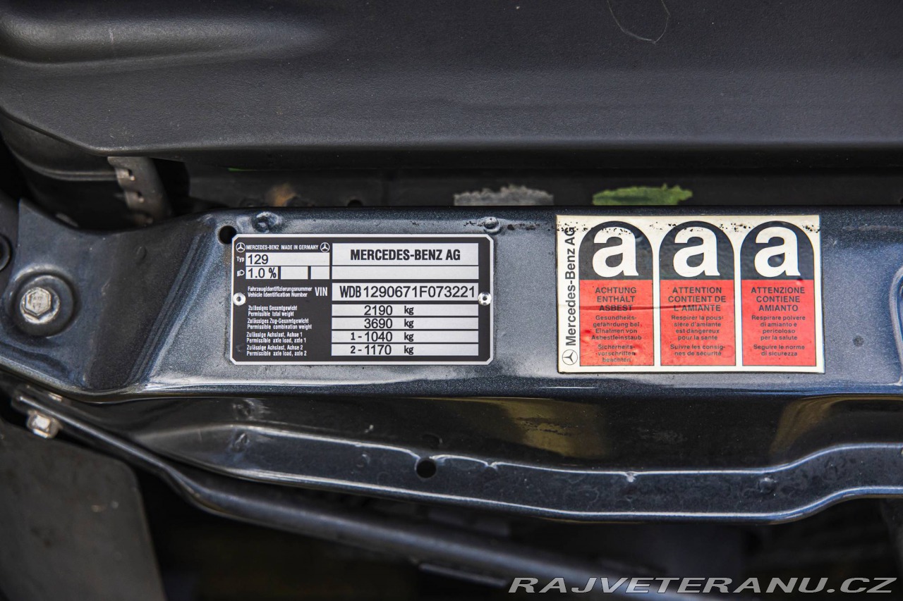 | Doplňující popis: | Mercedes-Benz SL 500 generace R129 představuje jeden z vrcholů německého automobilového inženýrství devadesátých let – elegantní, ale zároveň brutálně silný grand tourer, který se v tichosti a bez okázalosti umí přeměnit v raketu. S legendárním pětilitrovým osmiválcem pod kapotou jde o nejoblíbenější a nejvyváženější volbu celé modelové řady. Tento konkrétní exemplář byl dovezen ze švýcarského trhu a v České republice měl jedinýného majitele. Vůz byl po celou dobu provozován s maximální péčí a navštěvoval pravidelný servis. O jeho výjimečném postavení svědčí i fakt, že sloužil primárně pro radost – ročně najel maximálně 200 km a zbytek času trávil v bezpečí suché garáže. Technický stav a investice: Srdcem vozu je atmosférický vidlicový osmiválec (M119) o objemu 4 973 cm³ a výkonu 235 kW (320 koní). Aby byla zachována stoprocentní spolehlivost a perfektní chod, prošel motor v loňském roce kompletní generální opravou (GO). Vůz je tak mechanicky v kondici, která mu dává příslib dalších desetiletí bezproblémového provozu. Vůz je vyveden v nadčasové černé barvě a je registrován na českých značkách. Součástí je samozřejmě i pevná střecha (Hard Top) a veškerá dokumentace potvrzující schválenou technickou způsobilost i zapsané alternativní sady kol (Ronal-Carlsson, Brabus). Veteráni na Truc: parta normálních lidí, kteří milují auta. Desítky aut máme skladem v naší péči a další připravené k dovozu. Rozumíme vašim potřebám, jsme k dispozici pro vaší plnou spokojenost, protože ta je naším cílem. Umíme toho víc – například veškeré dokumenty nutné pro přihlášení vyřídíme rychle a efektivně. Více informací ochotně poskytneme na telefonním čísle +420 725 474 564 (i Whatsapp). Umíme vyřešit dovoz vašeho vysněného auta odkudkoliv (ať už klasického nebo nového) včetně registrace, pojištění a dalších souvisejících služeb. | |