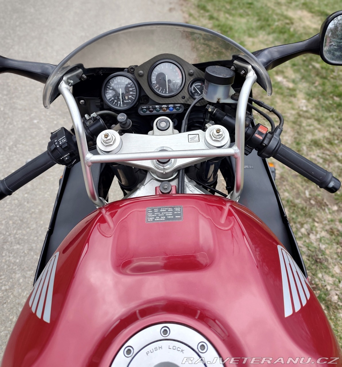 | Doplňující popis: | Honda CBR 900 RR Fireblade SC28 r.v.1995, motorka je po první a jediné majitelce, najeto má poctivých doložených 36tis.km, výkon 95kW, extrémně zachovalý, sbírková i investiční záležitost, nebouráno a nelakováno, původní stav kromě zadního karbonového blatníku a lehce vybraného polstrování řidičovi sedačky, kvůli malé výšce majitelky, u pravého předního blinkru slepovaná kapota po převážení motorky na místě, snadno řešitelné novým polepem, na kyvce stahovací pásky, které drží přímazávání řetězu, motorka stála od roku 2000, kdy se majitelce narodilo první dítě a tím skončila s ježděním na motocyklu, provozován tedy byl jen pět let, oživení a servis samozřejmě nutný, s tímto nájezdem, historií a zachovalostí je Fireblade asi nesehnatelný, nejsou a už nebudou, kompletní německé doklady na přihlášení, cena 97tis.Kč | |