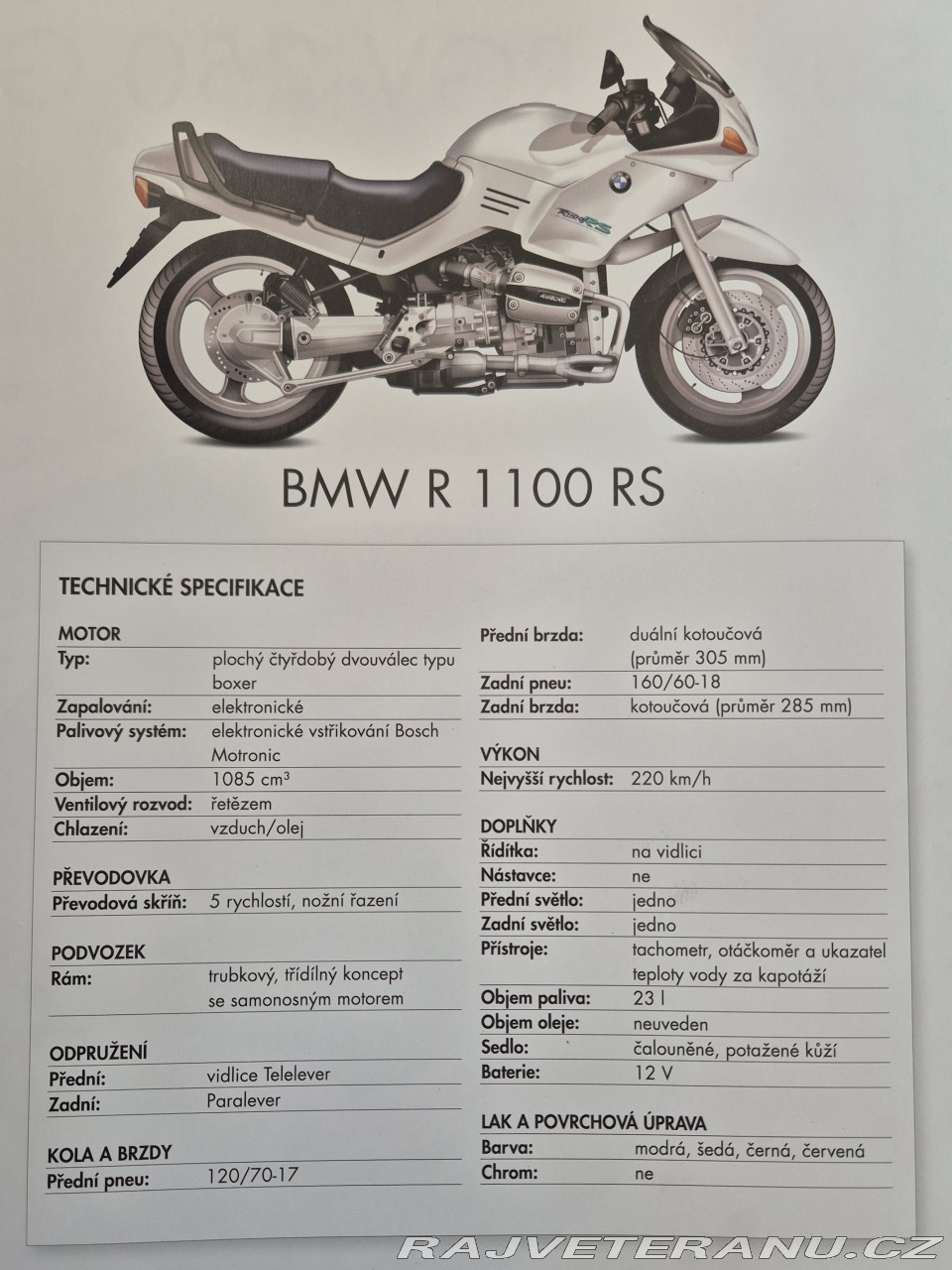 | Doplňující popis: | BMW R 1100 RS – VELMI PĚKNÝ STAV PRODÁM Technické parametry: • 66kw / 90hp, kroutící moment 95Nm, najeto 67 000km, r.v. 1995, ABS. • vlastním od roku 2018 • má bílé SPZ, už je možno i na veteránské • vše funkční • systém vstřikování paliva • STK do července 2026 Výrobní číslo: 0297614 | |