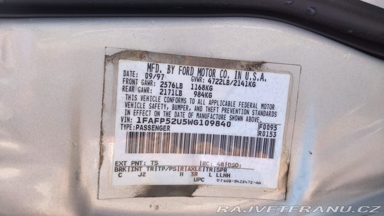 | Doplňující popis: | Technická platná do 10/2027 Dálniční známka platná do 28.4.2026 EKO placeno šestimístné, pohodlné a prostorné auto s plyšovýma sedačkama + volič pod volantem + rozvody řetězem + automat řadí hladce + vše funkční + po opravdu důkladném servise (oprava hydroměniče, přední náprava heavy duty, komplet tlumiče s pružinama, nová vodní pumpa, řemen, kladky, nové čelní sklo, udělané hlavy s těsněním atd.), díly motorcraft kde to bylo možné + spousta nových i použitých dílů k vozu (světla, brzdy, poloosy, uložení motoru, interiér díly...) + servisní literatura + karoserie ve velmi dobrém stavu co se koroze týká, žádný nástřik (viz foto) - na zadní části se loupe lak - jeden puchýř na LZ lemu CENA: 69 999 kč na plechových kolech se zimním obutím R16 84 999 kč na třípaprscích R15, čerstvě po renovaci, nové celoroční pneu Continental (nájezd do 1000 km), zapsané v TP Při slušném jednání bude plná nádrž. Přepis v den prodeje. Domluva na ceně u vozu. Více info sdělím po telefonu či u vozu. VIN: 1FAFP52U5WG109840 | |