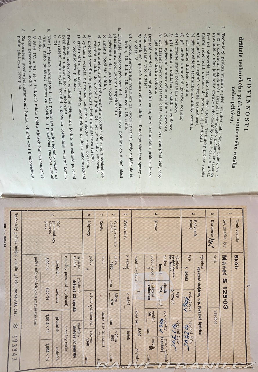 | Doplňující popis: | Prodám Manet 125 po kompletní renovaci. RV 1964, bílé značky, vše funkční a v perfekním stavu, nové baterie. Jsem majitelem 15 let a u celé renovace jsem byl přítomen. | |