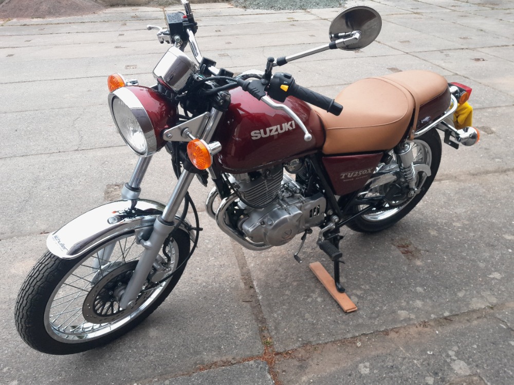| Doplňující popis: | Prodám Suzuki TU 250 X, r. v. 1997, najeto 2430 km se zárukou, STK 8/2029. Stav jako když vyjela z linky, naprosto původní, žádná renovace!! Nulová koroze nebo oxidace. Pouze nové pneu Bridgestone a kompletní oživení po dlouhém odstavení u Suzuki. Rok stará baterie, nové hadičky, vyčištěna nádrž, karburátor, seřízení. Před 100 km nový olej a filtr. Poctivá jednoduchá motorka vzduchem chlazená a s vyvažovací hřídelí zajišťující krásně plynulý chod. Nízká, vhodná pro nenší postavy, ženu a milovníky retra. Dobíjecí kabel C-TEK se semaforem detekujícím stav nabití baterie. Manuál, servisní kniha, dva klíče. Prosím pouze volat!! Dohoda u moto! | |