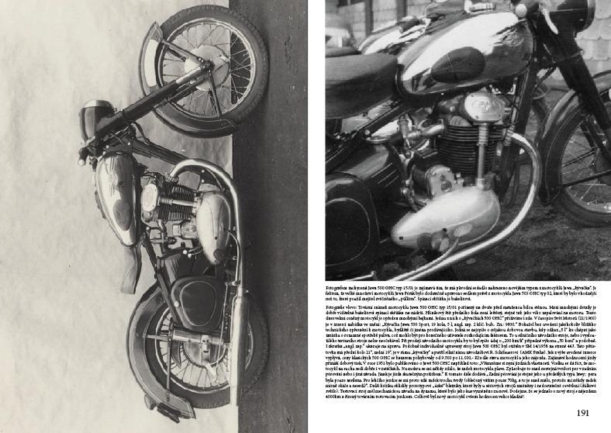Taková publikace s pěti sty, doposud většinou nikdy nepublikovanými archivními fotografiemi, ukazuje postupný vývoj motocyklového parku na Československých silnicích od roku 1938 do dnešních dnů. Na své si přijde opravdu každý. Snímky z Vašich dvorků, výletů a garáží jsou doplněny továrními snímky, dokumenty, letáky a dobovými reklamami. Rozsáhlý výběr toho co jezdilo po našich silnicích.